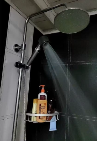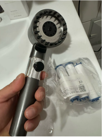 La tête contient un système de filtration par billes minérales, qui réduit le chlore, les impuretés et les odeurs de l’eau du robinet.