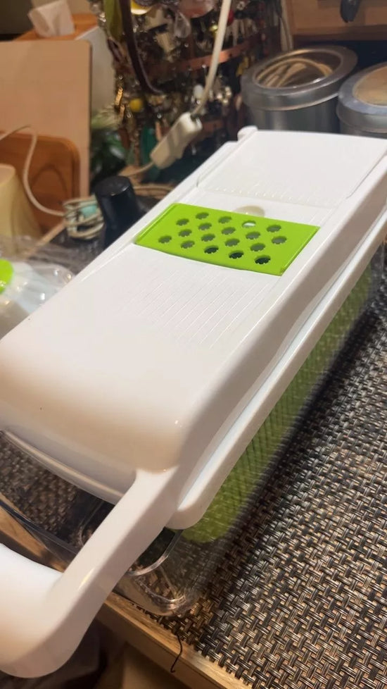Nei, du kan bruke mandolinen uten beholder, direkte over en bolle eller en skjærefjøl.