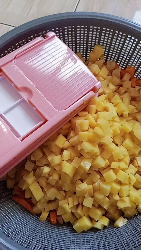 Ja, verktøyet er designet for å kutte selv faste grønnsaker. Det anbefales å kutte dem grovt i to før du setter dem inn.
