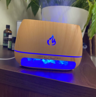 Super ładny na moim biurku! 💨 Mgła unosi się powoli, a efekt ognia jest ultra relaksujący.