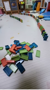 The dominos fall perfectly every time. The train moves well even on a carpet, very practical 👌